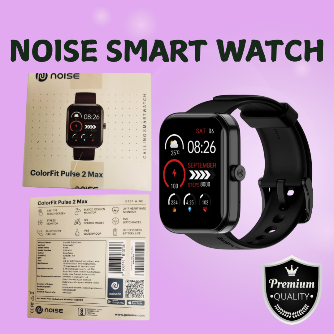 1.85" TFT Touchscreen | Bluetooth Calling | 100 Sports Modes | SpO₂ Monitor | 24/7 Heart Rate | Stress Monitor | IP68 Waterproof | 10 Days Battery | 150+ Watch Faces