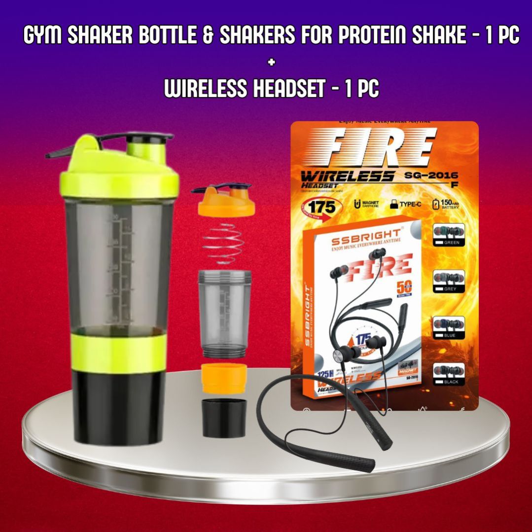 Gym Shaker Bottle & shakers for Protein Shake - 1 PC + wireless headset - 1 PC