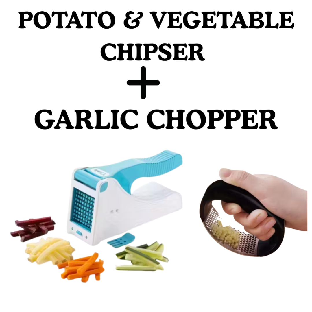 Kitchen Combo – Garlic Chopper + Potato & Vegetable Chipser