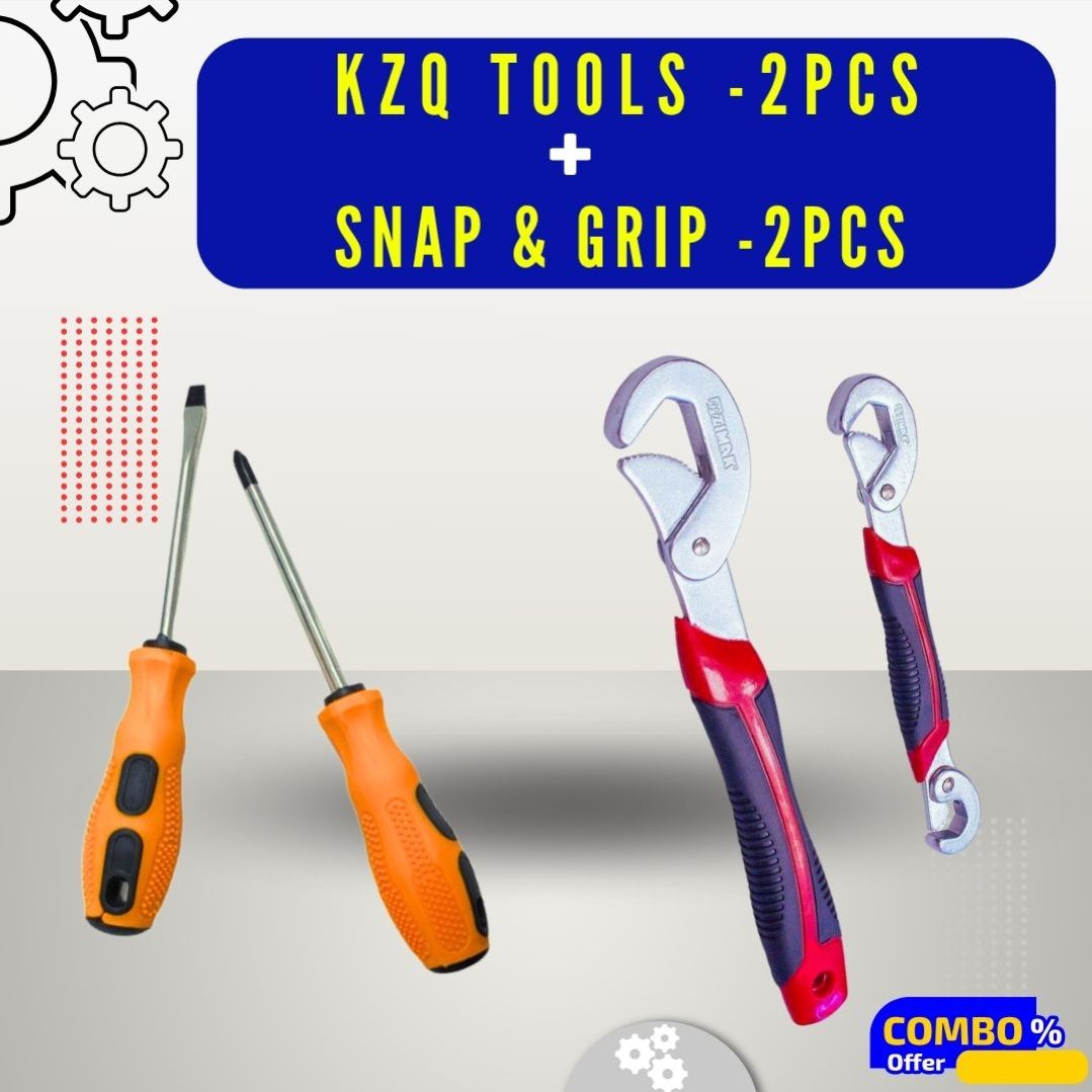 Complete 4-piece tool set featuring 2 high-performance KZQ tools and 2 Snap & Grip adjustable wrenches