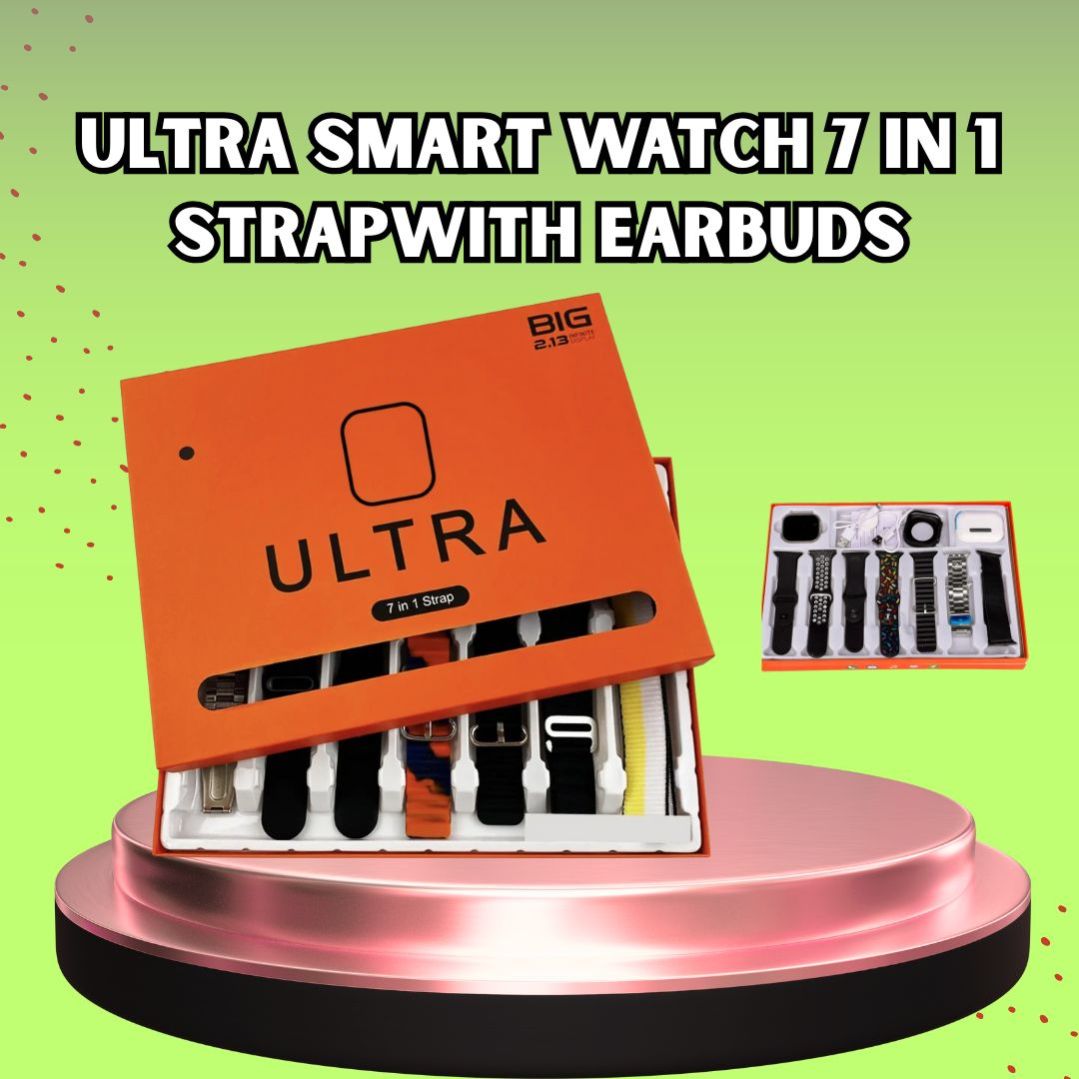 7-in-1 Ultra Smart Watch with built-in earbuds & multi-style straps – the ultimate wearable combo!